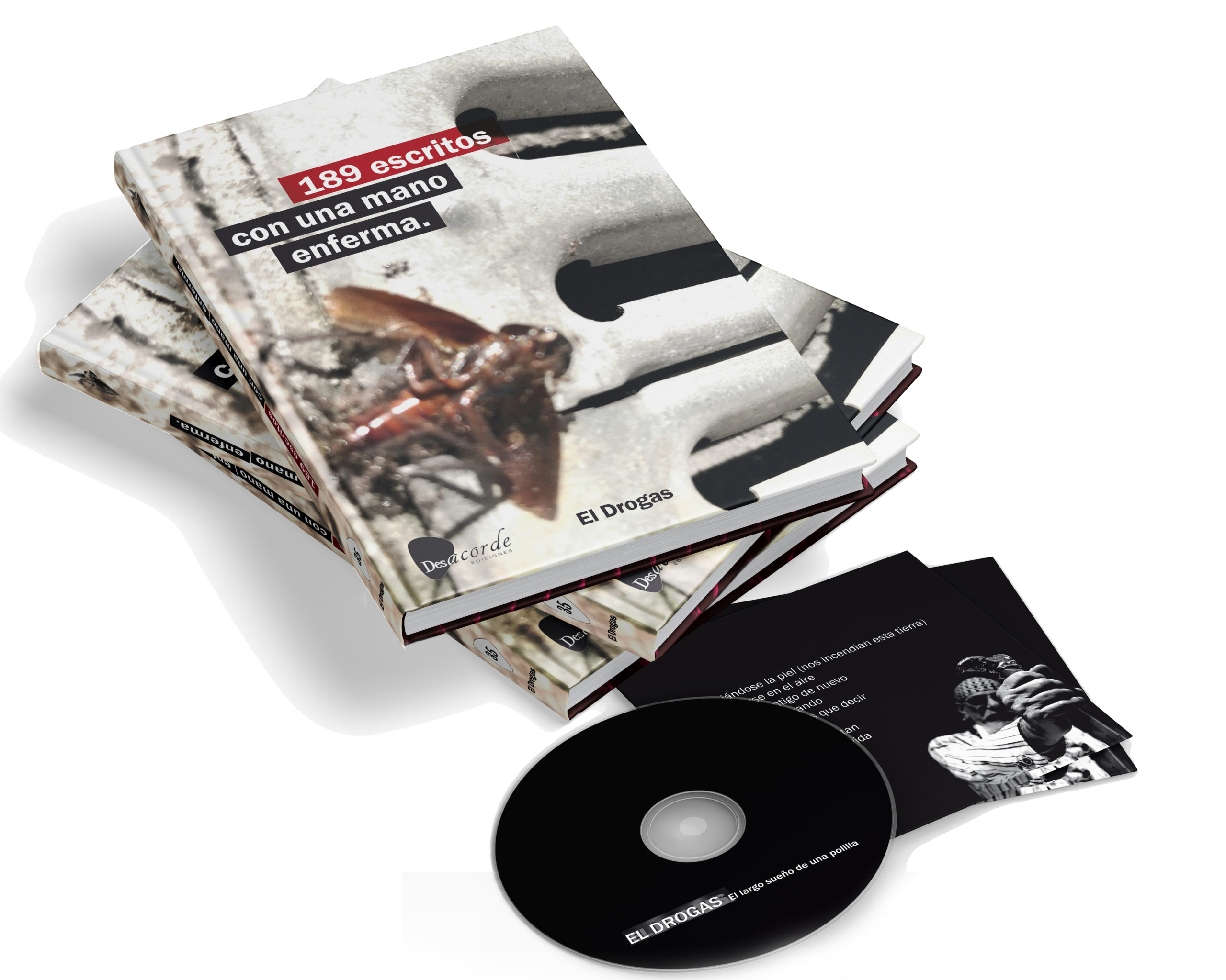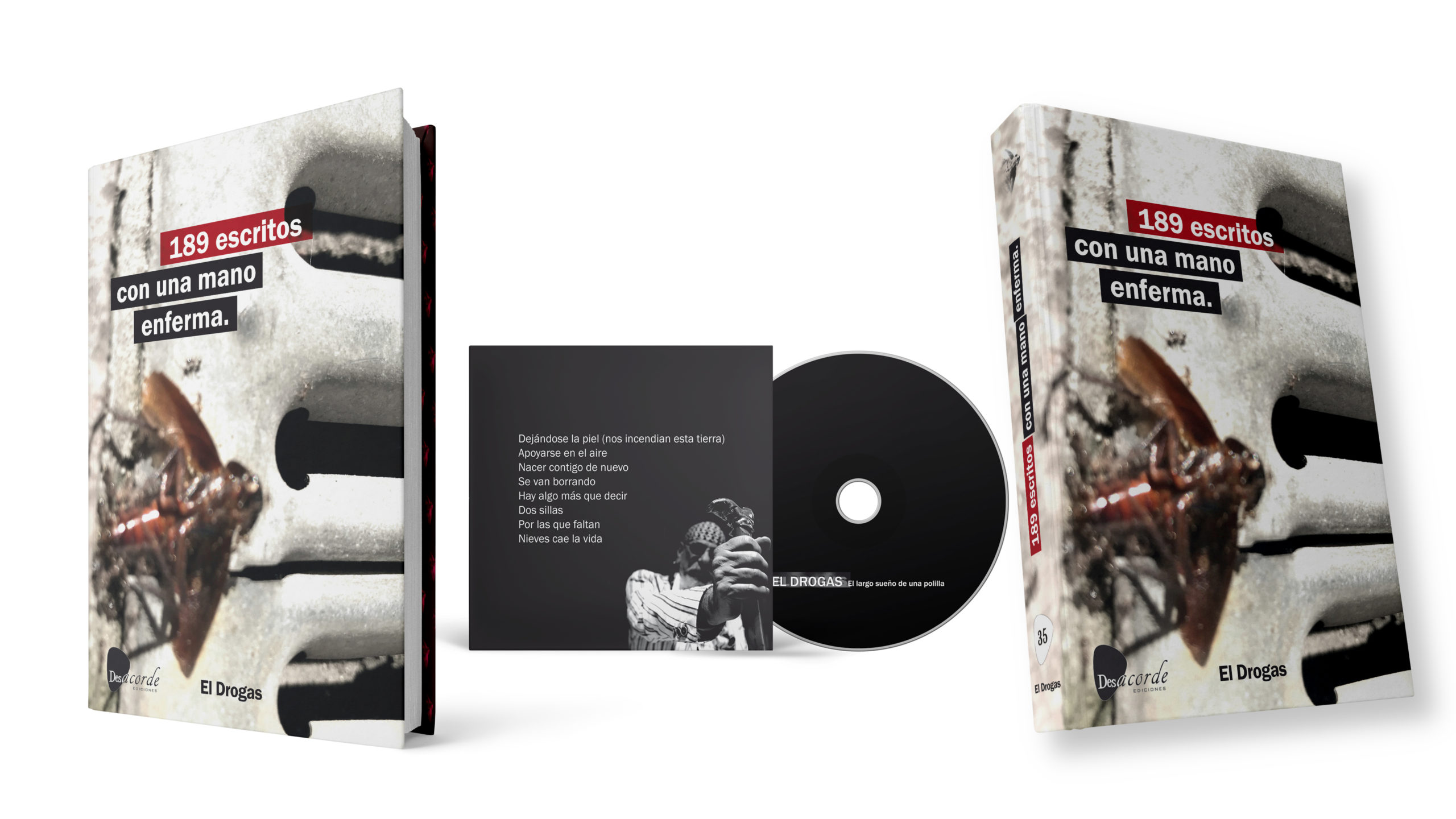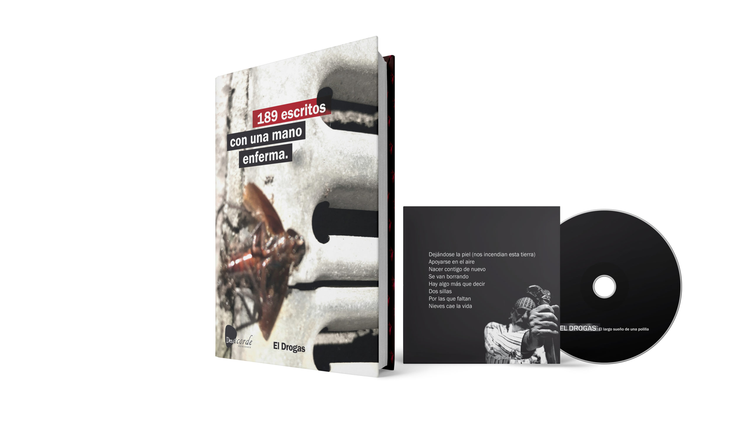 El próximo 1 de octubre verá la luz el nuevo proyecto literario y musical de Enrique Villarreal "El Drogas". Un trabajo conceptual que amplía su universo creativo y con el que se legitima, además de en su faceta musical, como una voz reconocible en la poesía contemporánea. De un lado “189 escritos con una mano enferma”, un cuidado y voluminoso libro-disco que incluye “El largo sueño de una polilla”, un nuevo disco en versión CD. Por el otro, la edición en vinilo de color del mencionado disco, con su material gráfico ampliado y un lujoso acabado para coleccionistas.